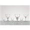 Sei bicchieri di diversa forma: tre bicchieri da liquore in cristallo trasparente con decori incisi; tre bicchieri differenti in cristallo due da acqua ed una coppa per Martini.