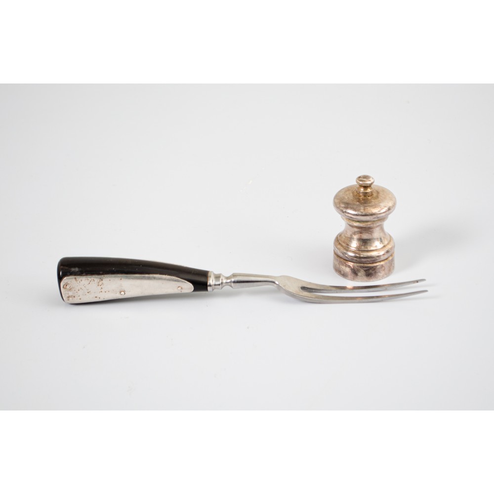 Un forchettone per carni ed una macina pepe in silver. Punzoni.