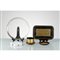 Piatto circolare in cristallo incolore con bordo argento, quattro ciotoline cubiche in porcellana bianca, set in papier machè composto da vassoio, due piattini ed una ciotola decorati in oro su fondo nero. Marchio di produzione.