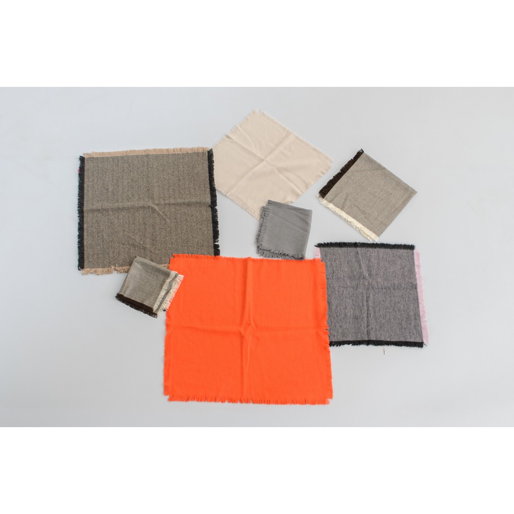 Sette strofinacci da cucina in Cashmere e nei toni del grigio, uno panna, ed uno rosso ed uno marrone. Misure differenti.