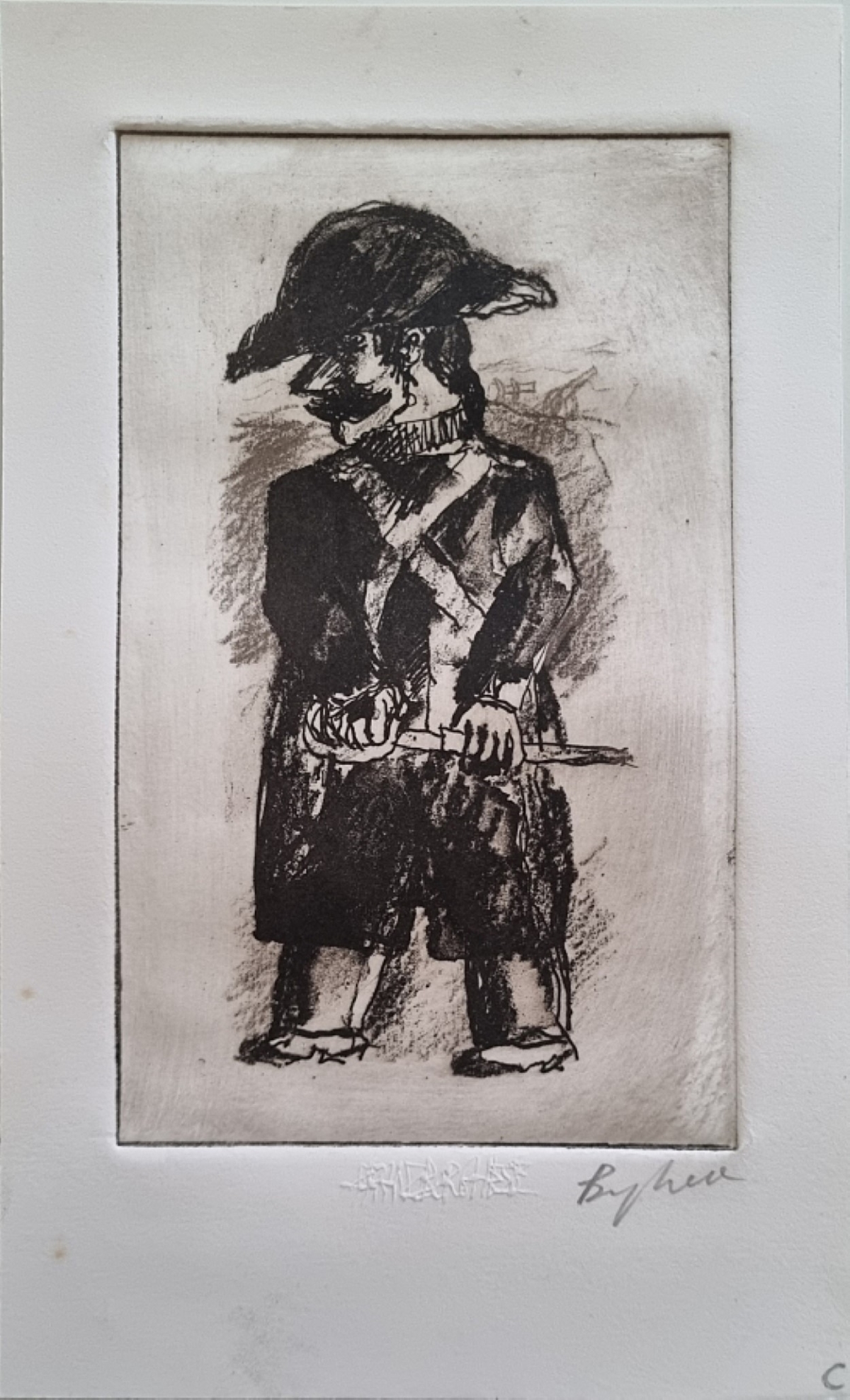 BORGHESE FRANZ Roma 1941 - 2005 "Senza titolo" Incisione, prova di stampa per esecuzione definitiva, su cartoncino cm 14,7x24 (foglio), cm 10,7x17,5 (disegno). Firma e lettera C (numerazione alfabetica) sul fronte in basso a destra, timbro a secco "Borghese" al centro. Provenienza Studio Borghese.