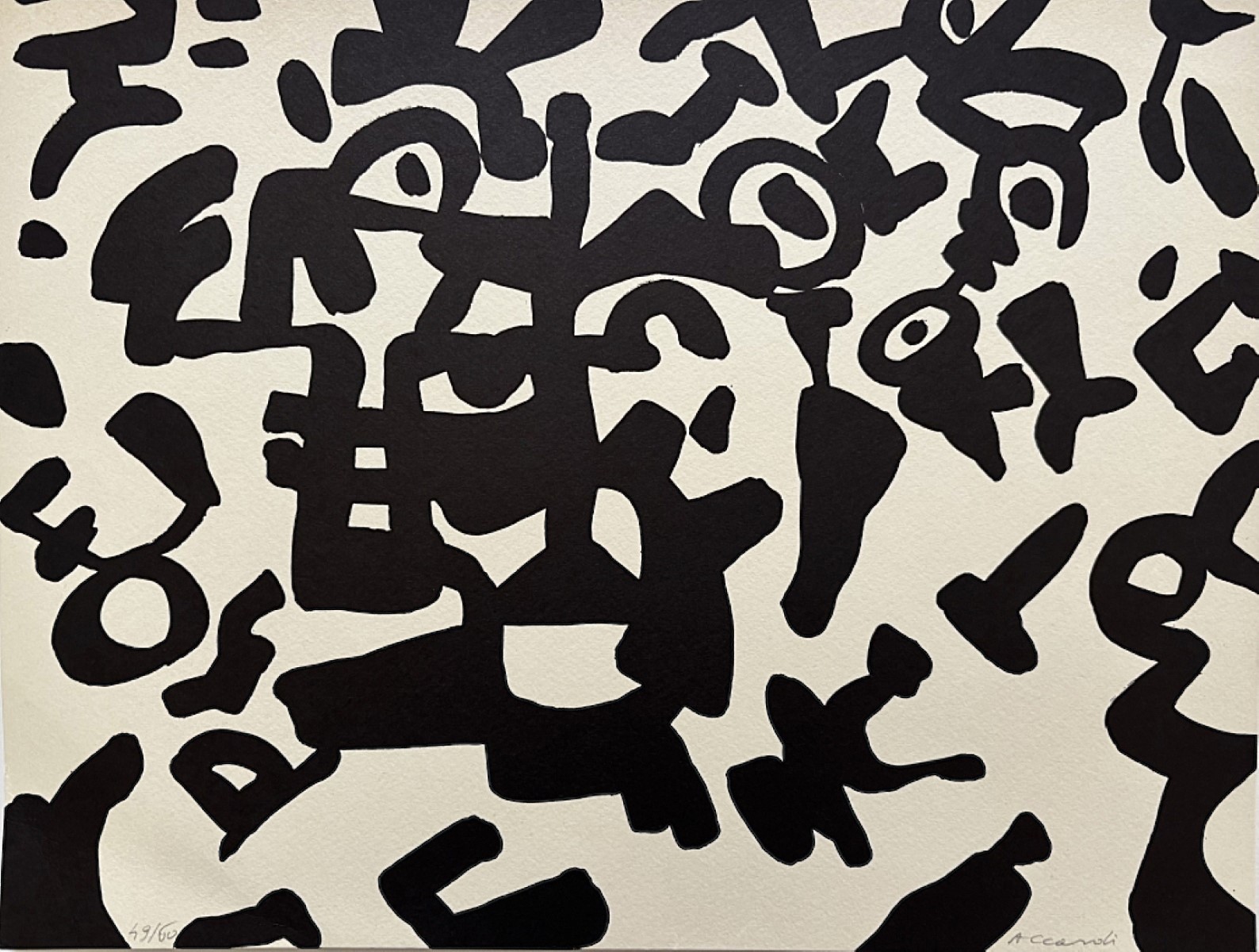 ACCARDI CARLA Trapani 1924 - Roma 2014 "Ohne titel" Litografia in B/N su cartone cm 38x28,7 del 1984. Firmata sul fronte in basso a destra, tiratura 49/60 a sinistra.