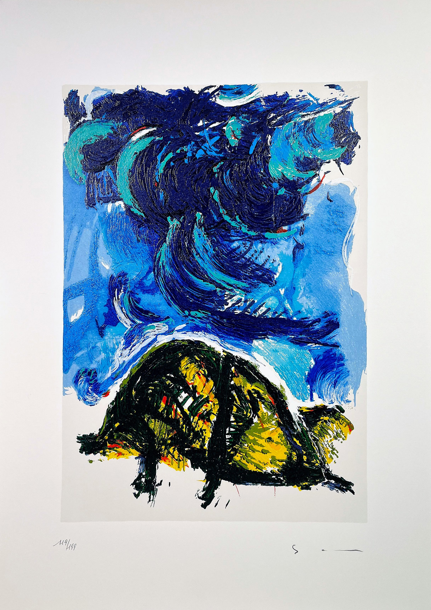 SCHIFANO MARIO Libia 1934 - Roma 1998 "Senza titolo" Serigrafia materica su cartoncino cm 50x70. Firma e timbro a secco "Mario Schifano" sul fronte in basso a destra, tiratura a sinistra.