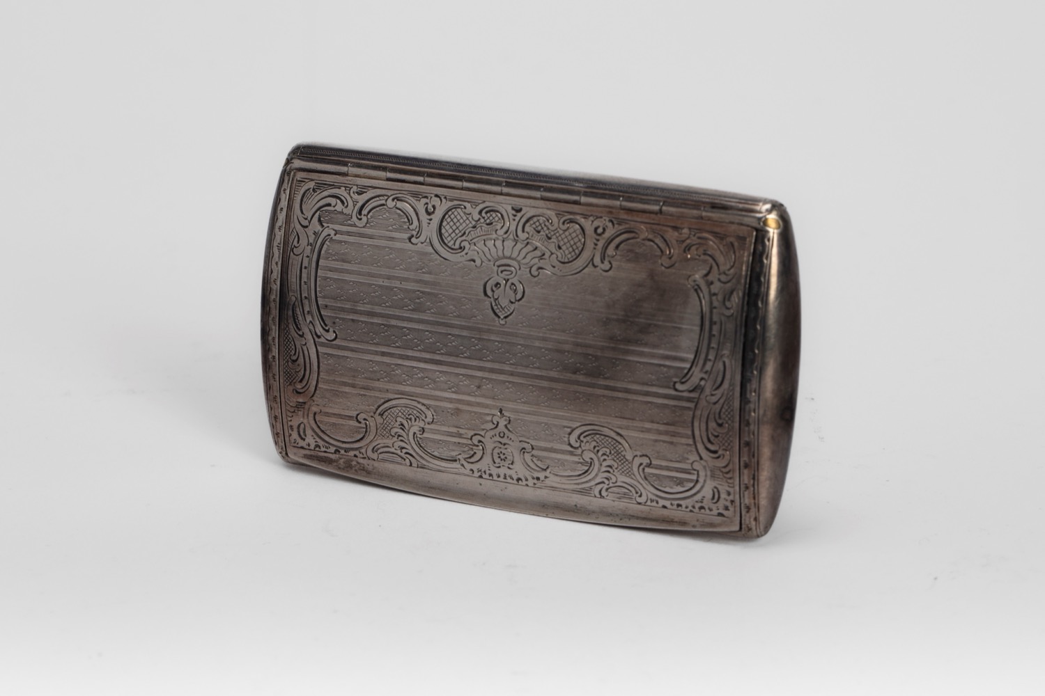 con decoro inciso a piccoli motivi geometrici entro cornice a volute e riccioli.