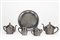 composto da teiera, caffettiera, lattiera, zuccheriera, piatto e vassoio, con corpo riccamente cesellato e inciso a motivi arabeschi, prese e beccucci mossi, pomoli cesellati a pigna stilizzata.