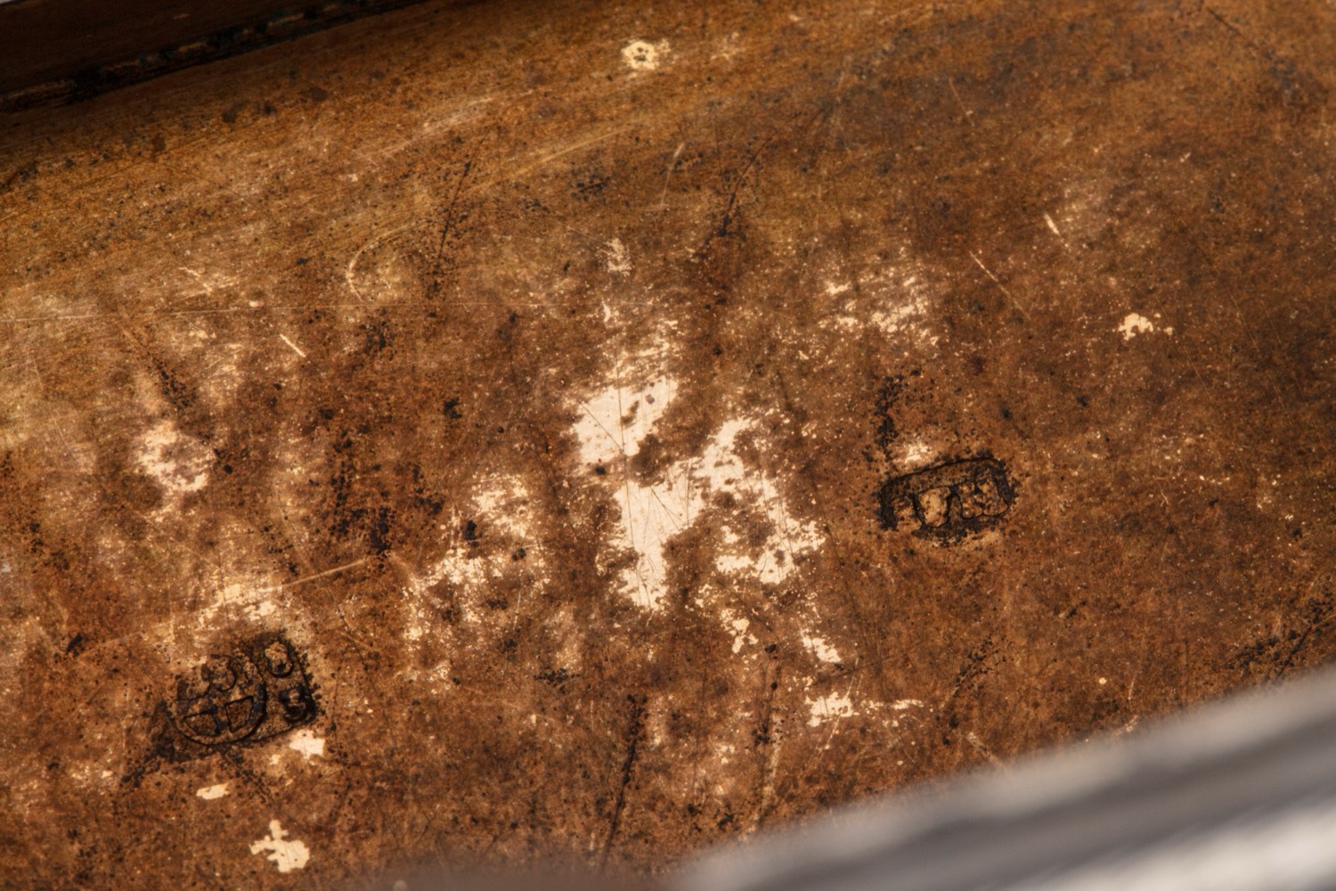 con coperchio inciso a cartiglio con al centro monogramma RB.