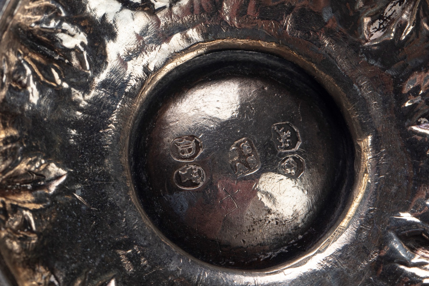 con decori a sbalzo ed incisi, prese sagomate lisce e a doppia mossa, punzoni diversi.