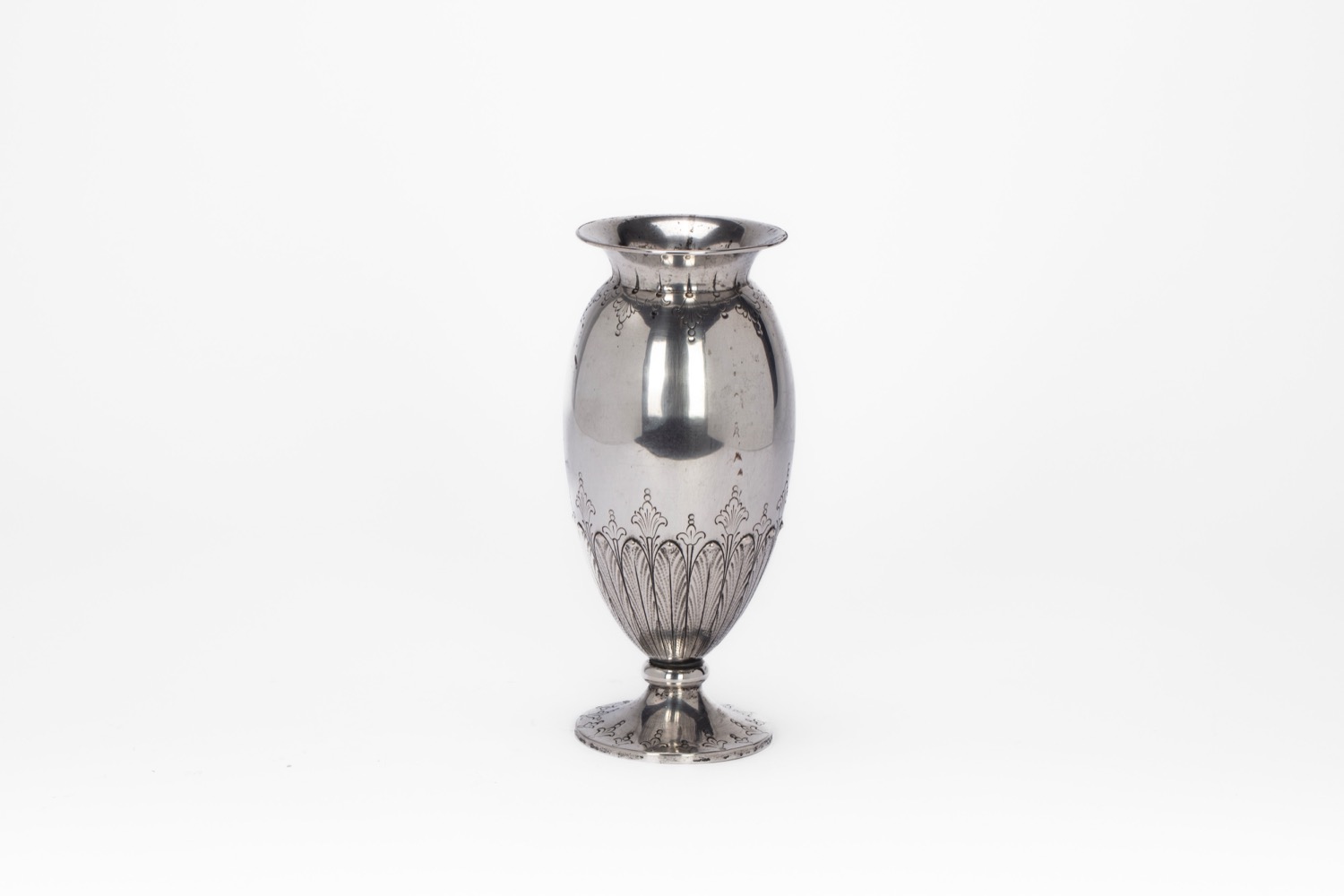 a corpo bombato decorato con incisioni e cesellature stilizzate. (Difetti).
