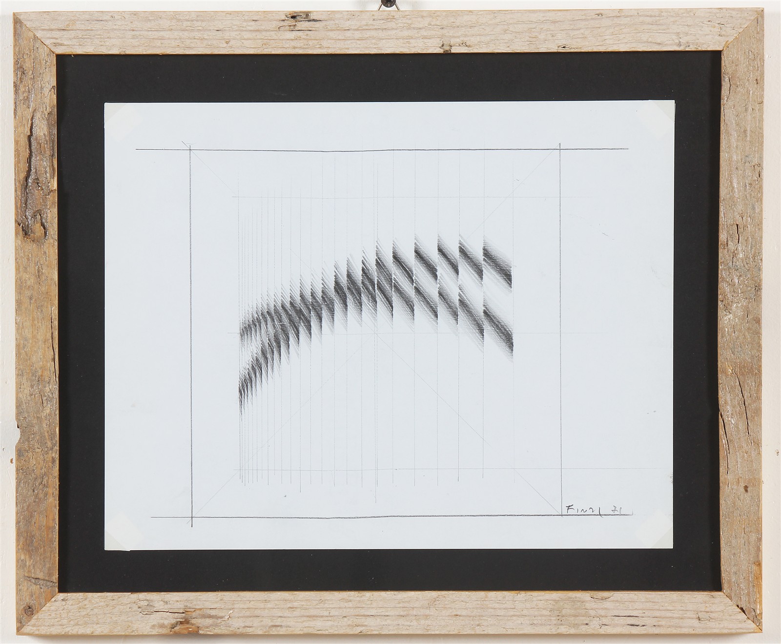 FINZI ENNIO (n. 1931) Senza titolo. 1971. Matita su carta. Cm 28,00 x 22,00. Firma e anno in basso a destra. Autentica dell'artista su fotografia. Cornice presente