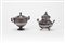 di diverso decoro, una con corpo finemente inciso a nastri e ghirlande floreali, una con corpo sbalzato e inciso a volute.