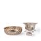 composto da un'alzatina a bordo traforato, una ciotola sbalzata e una scatolina porta pillole, a decori diversi.