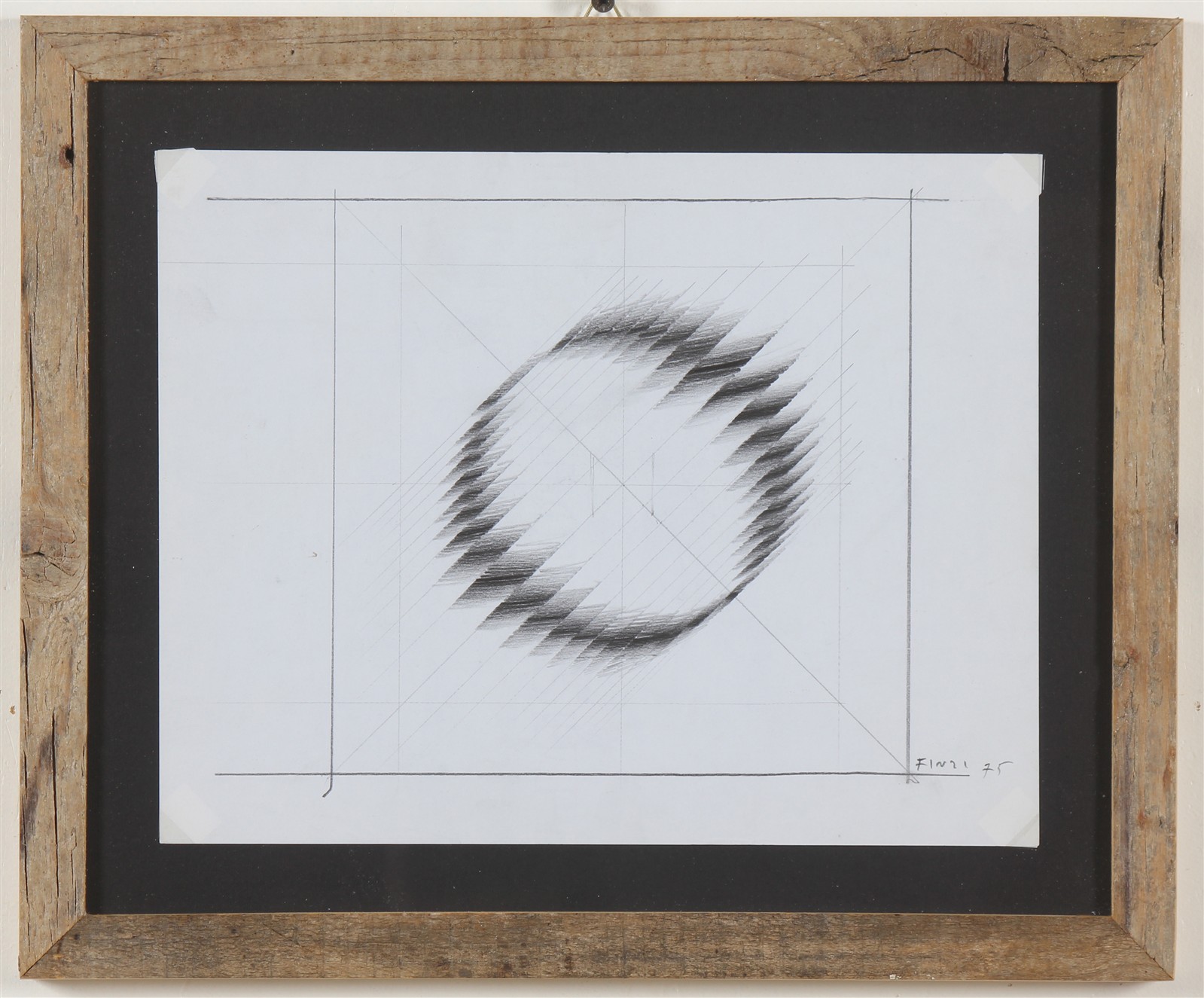 FINZI ENNIO (n. 1931) Senza titolo. 1975. matite su carta. Cm 28,00 x 22,00. Firma e anno in basso a destra. Autentica dell'artista su fotografia. Cornice presente