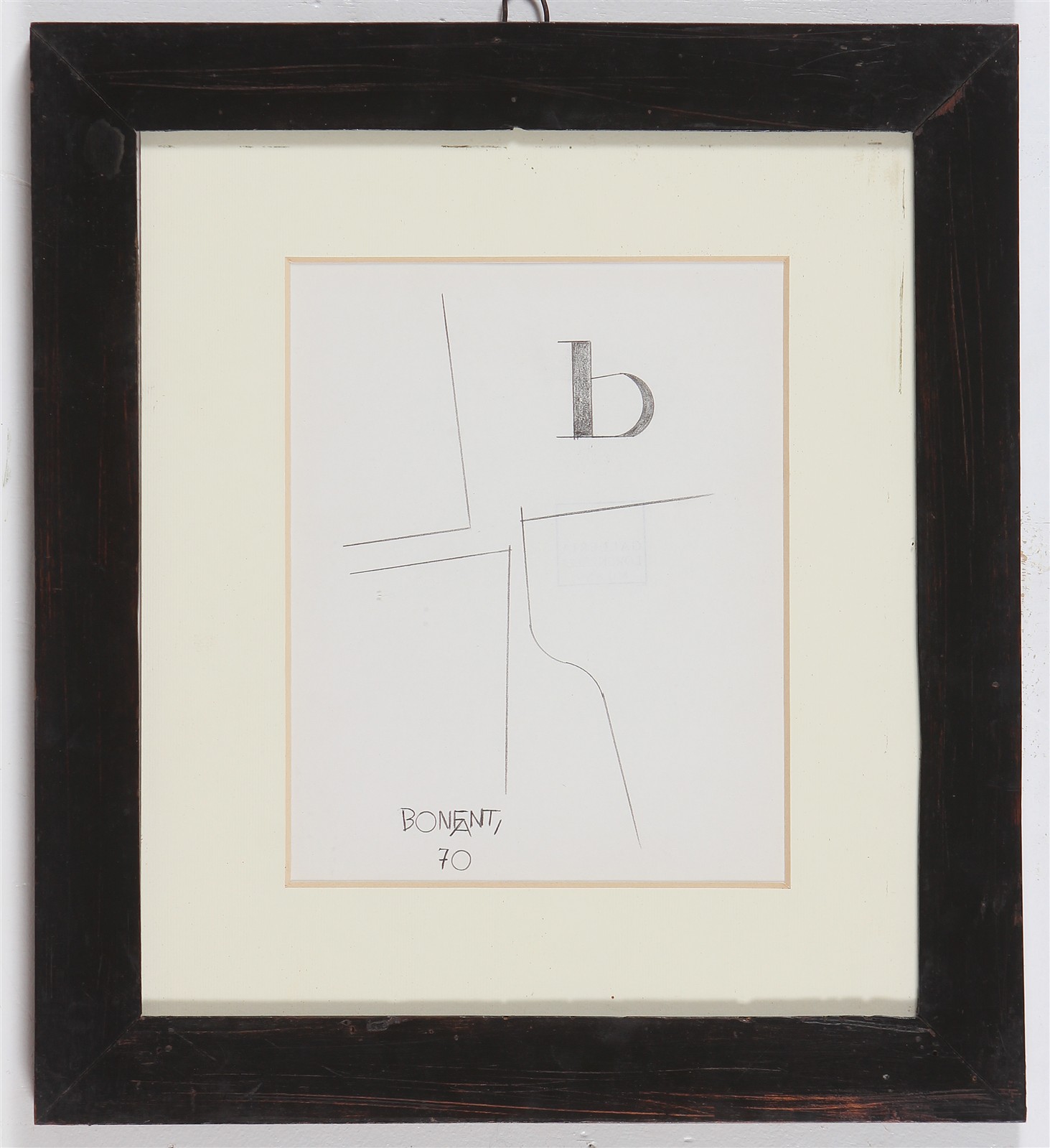 BONFANTI ARTURO (1905 - 1978) senza titolo. 1970. Matita su carta. Cm 16,00 x 20,00. Firmato in basso a destra "Bonfanti 70". Timbro Galleria Lorenzelli MIlano al retro. Cornice presente