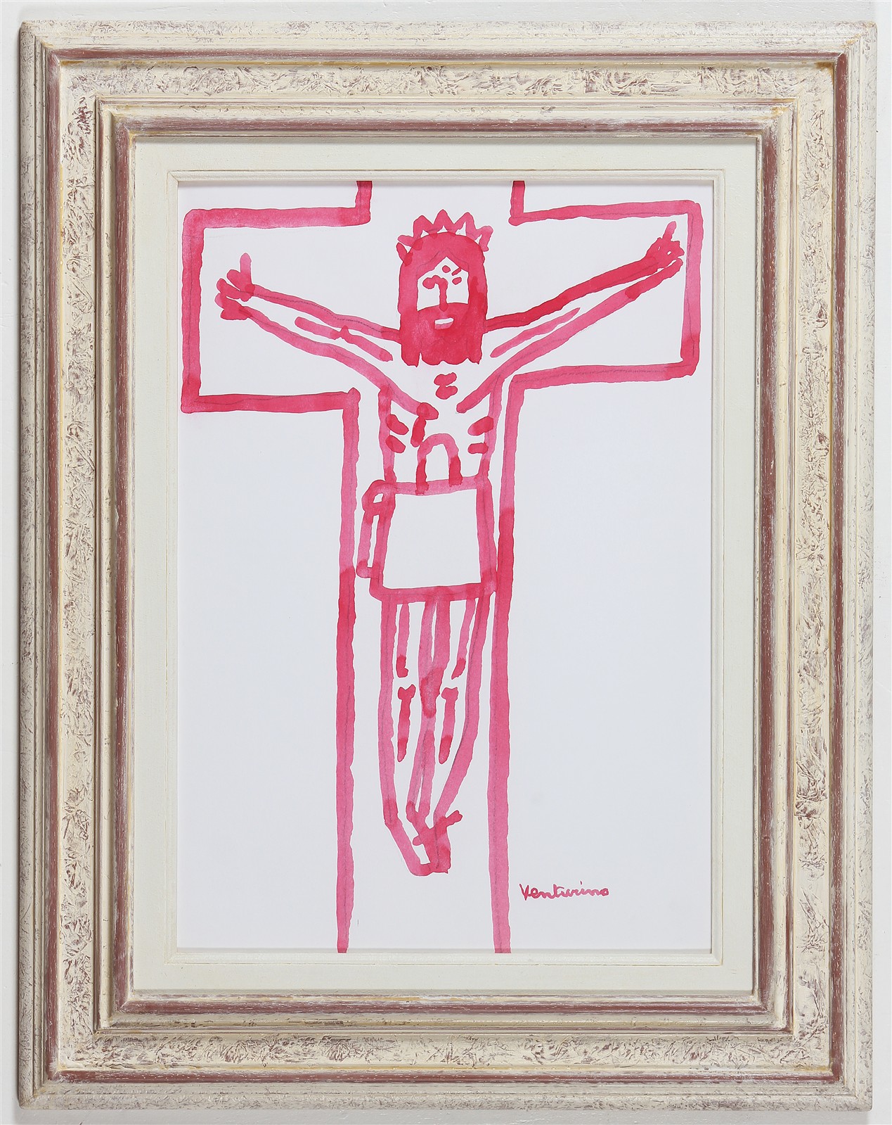 VENTURI VENTURINO (1918 - 2002) Cristo in croce. Acquerello su carta. Cm 32,00 x 50,00. Firma in basso a destra. Autentica su fotografia. Cornice presente