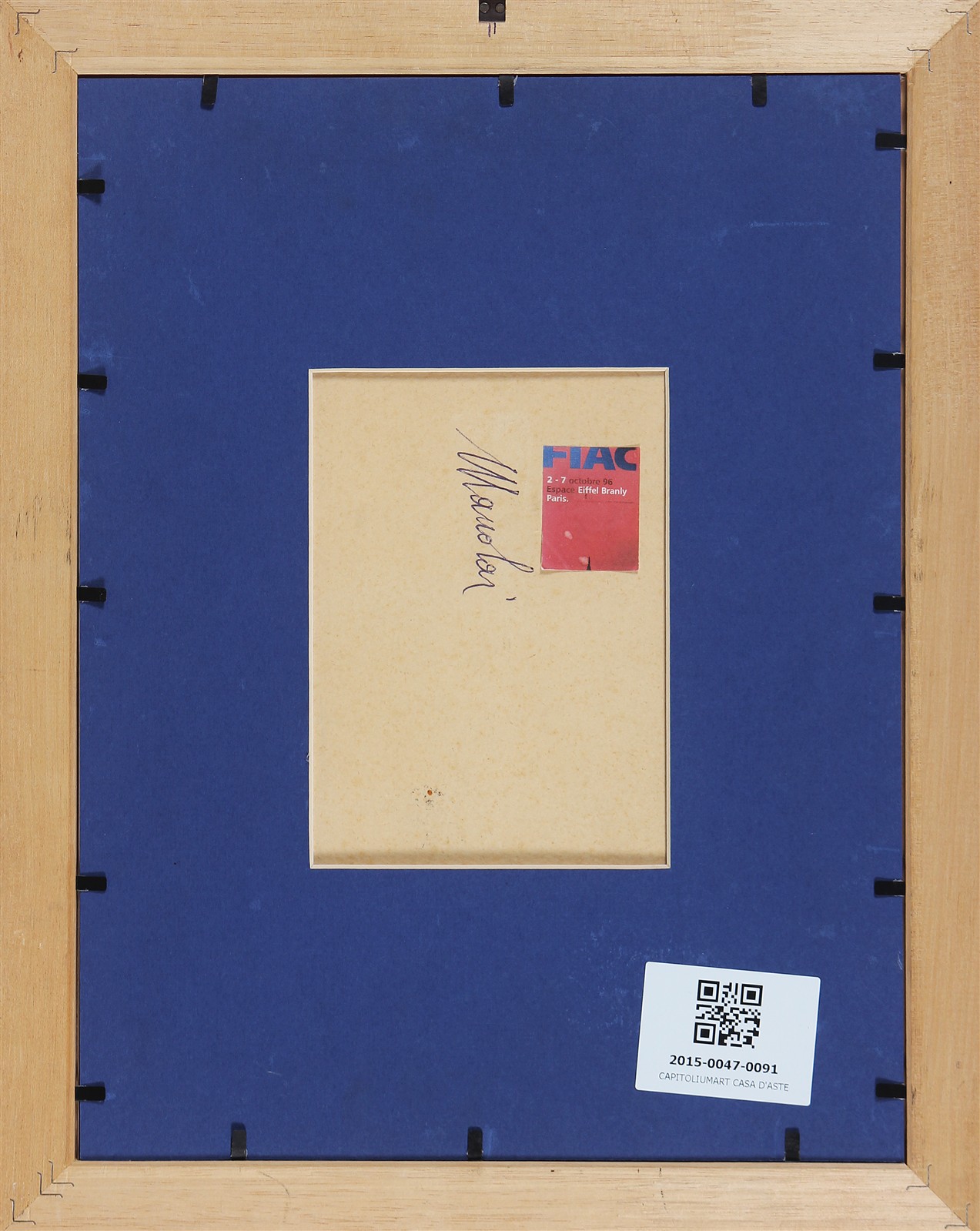 CHIA SANDRO (n. 1946) Testa. Biro su carta. Cm 18,50 x 14,00. Firma in basso a destra. Al retro reca il cartiglio del Fiac, Paris, 2-7 ottobre 1996. Parere verbale a cura dell'Archivio Sandro Chia, archiviazione disponibile a discrezione dell'acquirente. Cornice presente