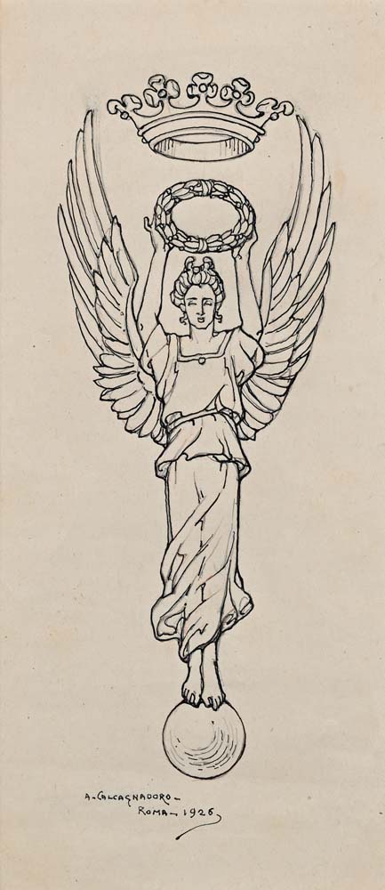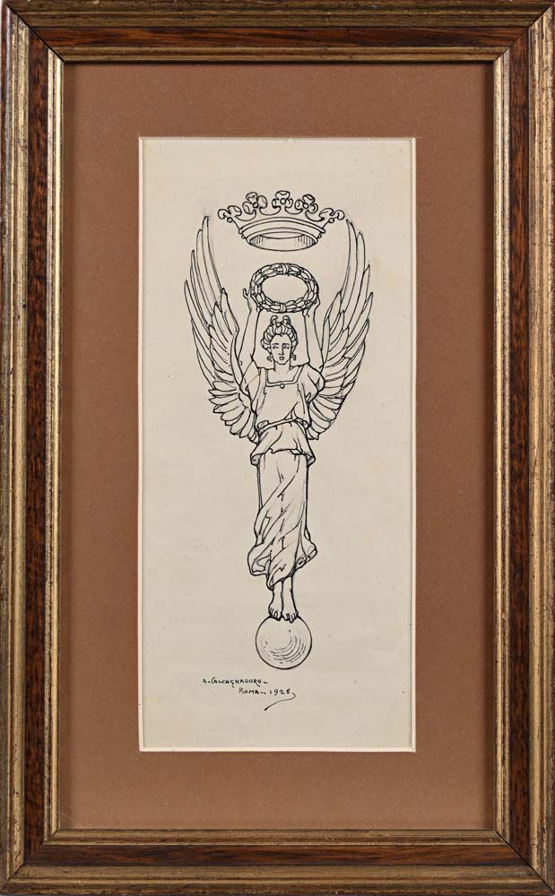 La vittoria 1926 firmato e datato in basso A. CALCAGNADORO - / ROMA - 1926 matita e china su carta cm 26,5 x 12 - in cornice cm 38,5 x 24