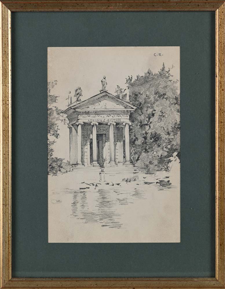Carlo Romagnoli (Roma 1888 - Roma 1965) Due disegni a) Il tempietto di Villa...