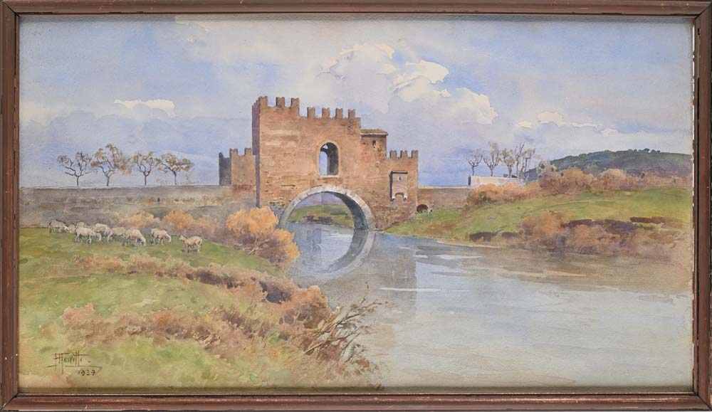 Roma, Il ponte Nomentano 1939 firmato e datato in basso a sinistra F ANIVITTI / 1939 acquerello su cartoncino cm 34,5 x 62 – in cornice cm 38 x 65,5