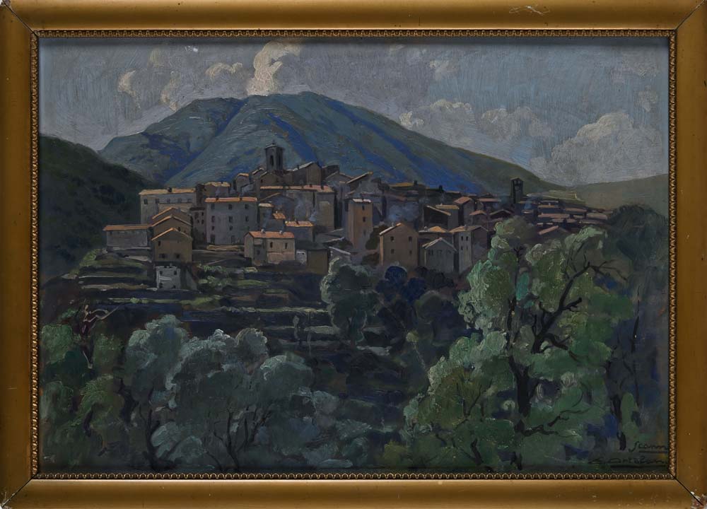 Enrico Ortolani (Roma 1883 - Roma 1972) Veduta di Scanno intitolato e firmato...
