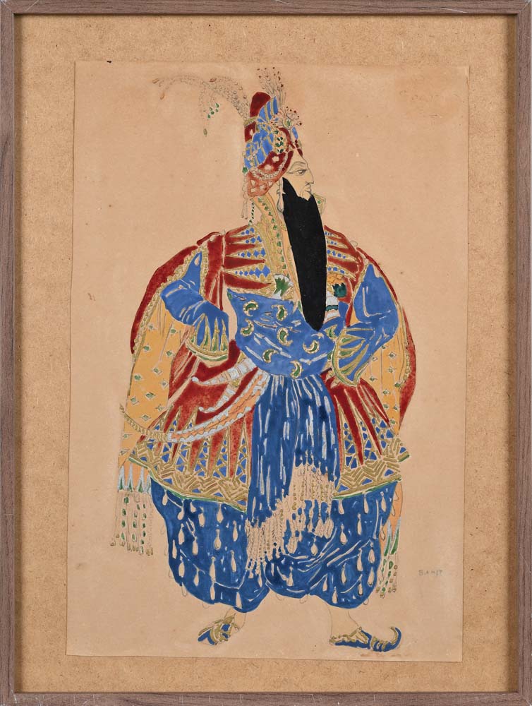 Studio di costume per il sultano Shariar nel balletto Shéhérazade 1910 circa Firmato in basso a destra BAKST