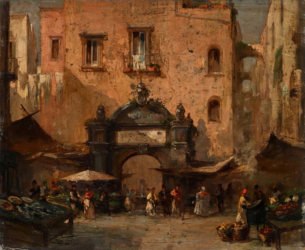 Vincenzo Canino (Napoli 1891 - Napoli 1971) Mercatino a Napoli 1914 firmato e...