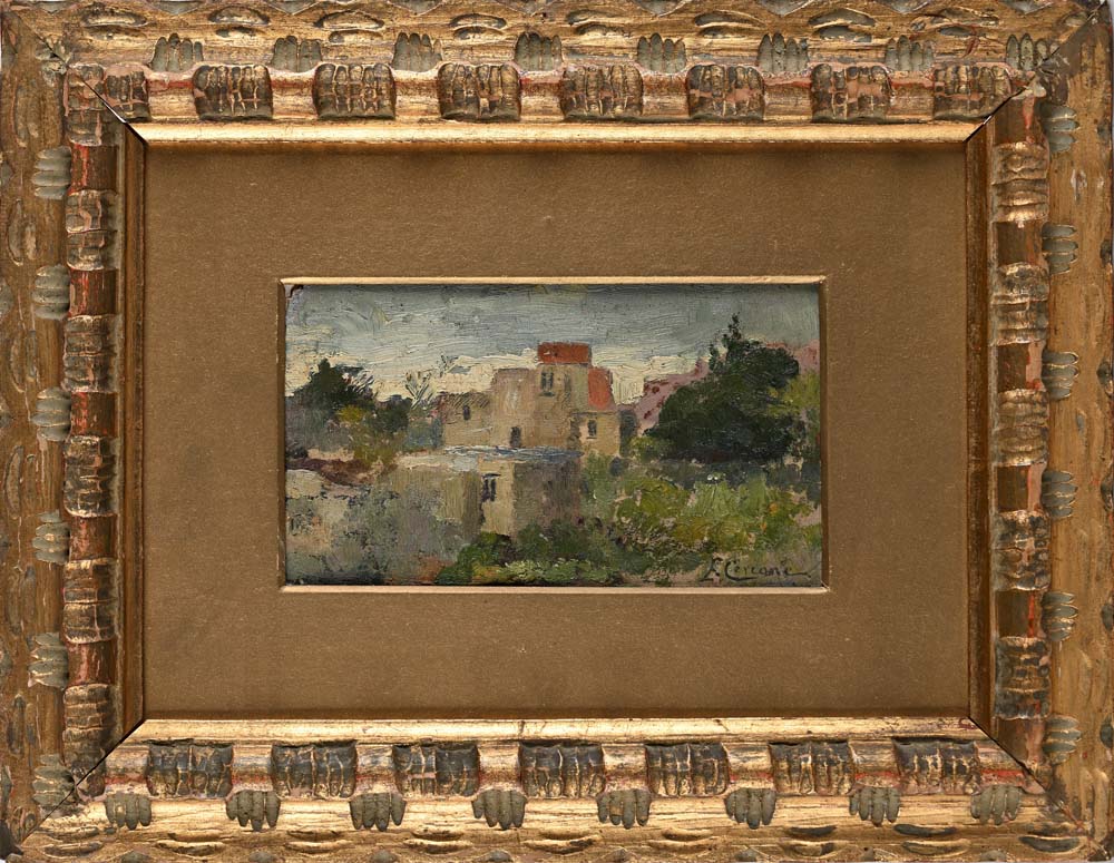 Caseggiati firmato in basso a destra E. Cercone olio su legno cm 10 x 17,5 - in cornice cm 28 x 35,5