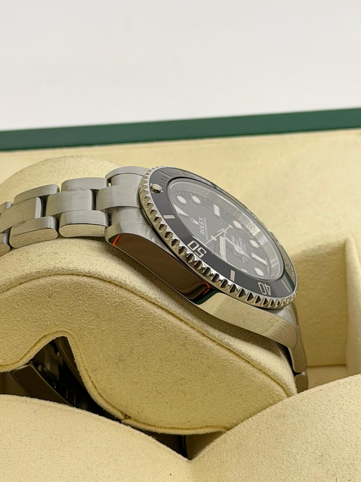 Marca Rolex Modello (Orologio) Submariner (No Date) Numero di referenza 114060 Carica Automatico Materiale della cassa Acciaio Materiale cinturino Acciaio Anno di produzione 2013 documenti originali, no box la scatola è utilizzata solo per fotografie non in vendita Materiale della cassa Acciaio Diametro 40 mm Impermeabile 30 ATM Materiale lunetta Ceramica Vetro Vetro zaffiro Quadrante Nero Numeri sul quadrante Senza numeri Cinturino Materiale cinturino Acciaio Colore cinturino Acciaio Chiusura Déployante Materiale chiusura Acciaio - COMMISSIONE D’ASTA 23%