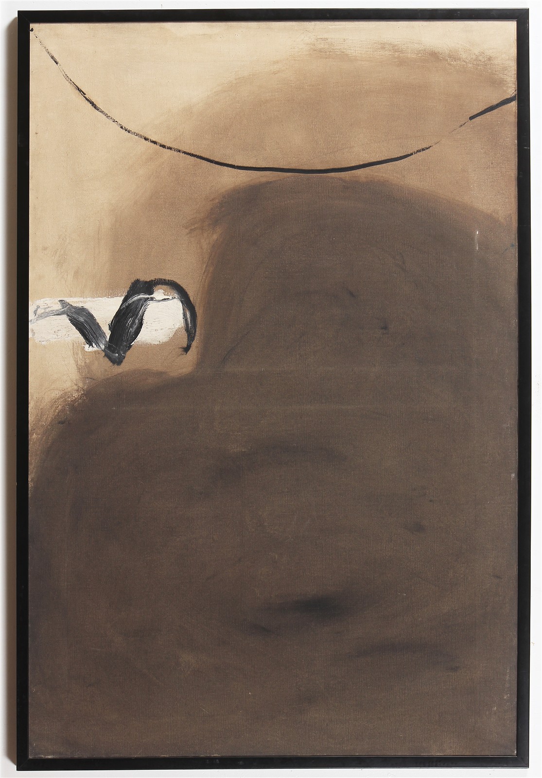 SWAN DOUGLAS (1930 - 2000) Brown smoke & black line. Olio su tela . Cm 80,00 x 120,00. Al retro titolo e firma. La tela presenta una piccola mancanza di colore in alto a sinistra. Cornice presente