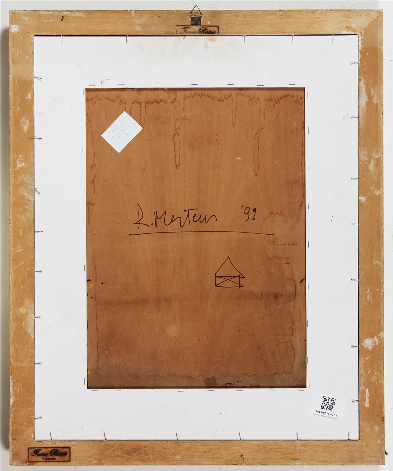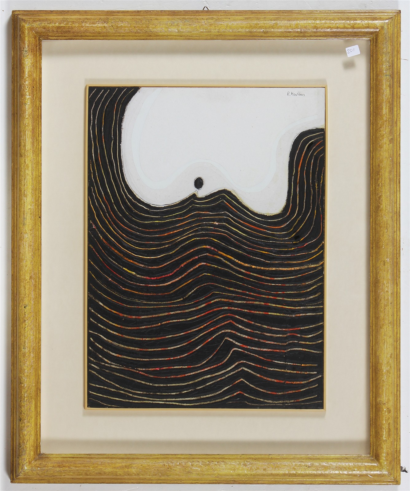 MERTENS RENATO (n. 1927) Senza titolo. 1992. Tecnica mista su tavola. Cm 34,00 x 40,00. Firma in alto a destra. Al retro firma e data. Cornice presente
