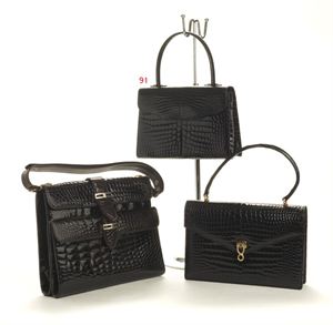 BORSA IN COCCODRILLO Piccola borsa nera a un manico, chiusura a pattina,...