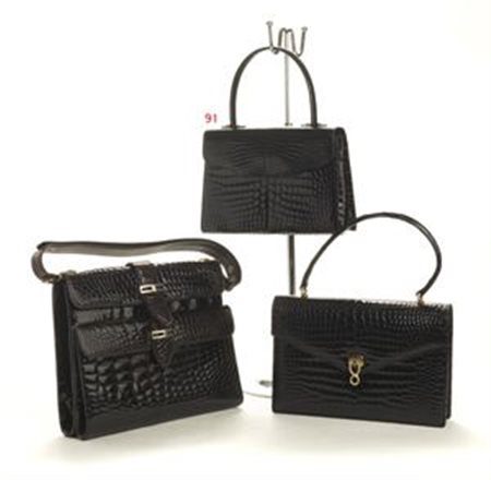 BORSA IN COCCODRILLO Piccola borsa nera a un manico, chiusura a pattina, etichetta "Amedeo Torino", anni '60 cm 15x21 CROCODILE BAG 1960's Small crocodile black bag with one handle, flap closure with an "Amedeo Torino" label . Size cm 15 x 21
