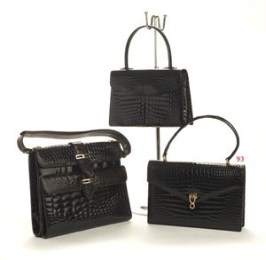 BORSA IN COCCODRILLO Piccola borsa con manico nera, chiusura a pattina con...