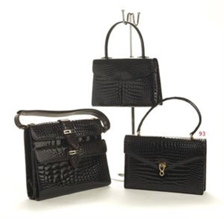BORSA IN COCCODRILLO Piccola borsa con manico nera, chiusura a pattina con gancetto dorato, anni' 60 Cm 16x24 CROCODILE BAG 1960's Small black crocodile handbag with flap closing and golden hook. Size cm 16 x 24