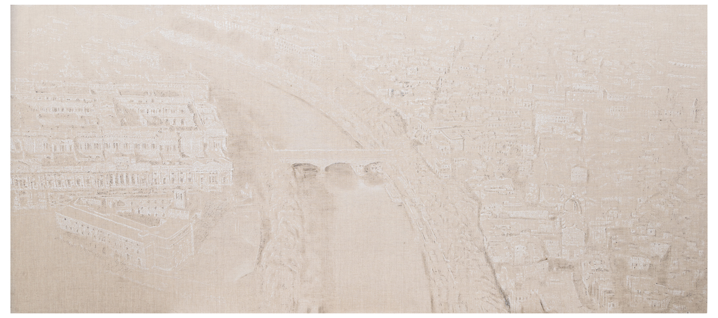 Castilletti reinterpreta il paesaggio urbano, lavorandovi come un pittore di vedute, ma a partire da stampe o foto antiche. Restituisce così di Roma,in particolare delle sue prospettive più famose, un'immagine poetica e inusitata.