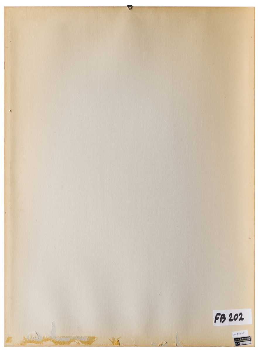 Elementi distintivi: sul verso, etichetta Cassa di Risparmio di Fabriano e Cupramontana con riferimenti di inventario ed analoga etichetta anonima