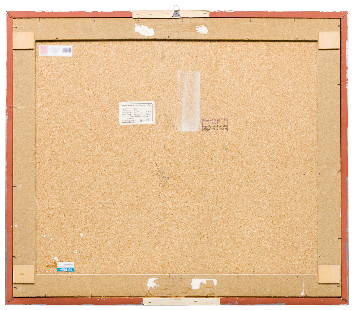 Elementi distintivi: etichetta della Banca Popolare di Intra con riferimento di inventario ed etichetta di partecipazione al Concorso Nazionale di Pittura Estemporanea di Arona, 1978, con dati dell’autore dell’opera; timbro dell’autore con dati dell’opera