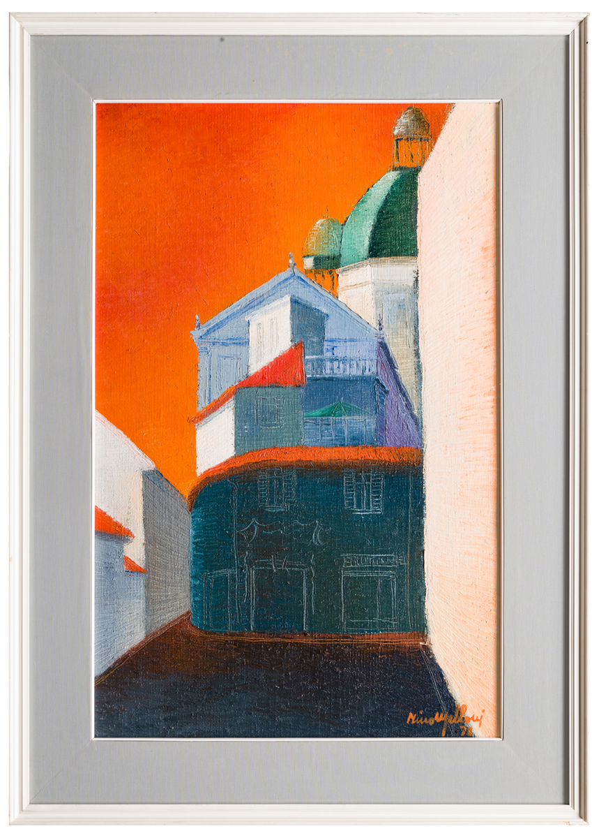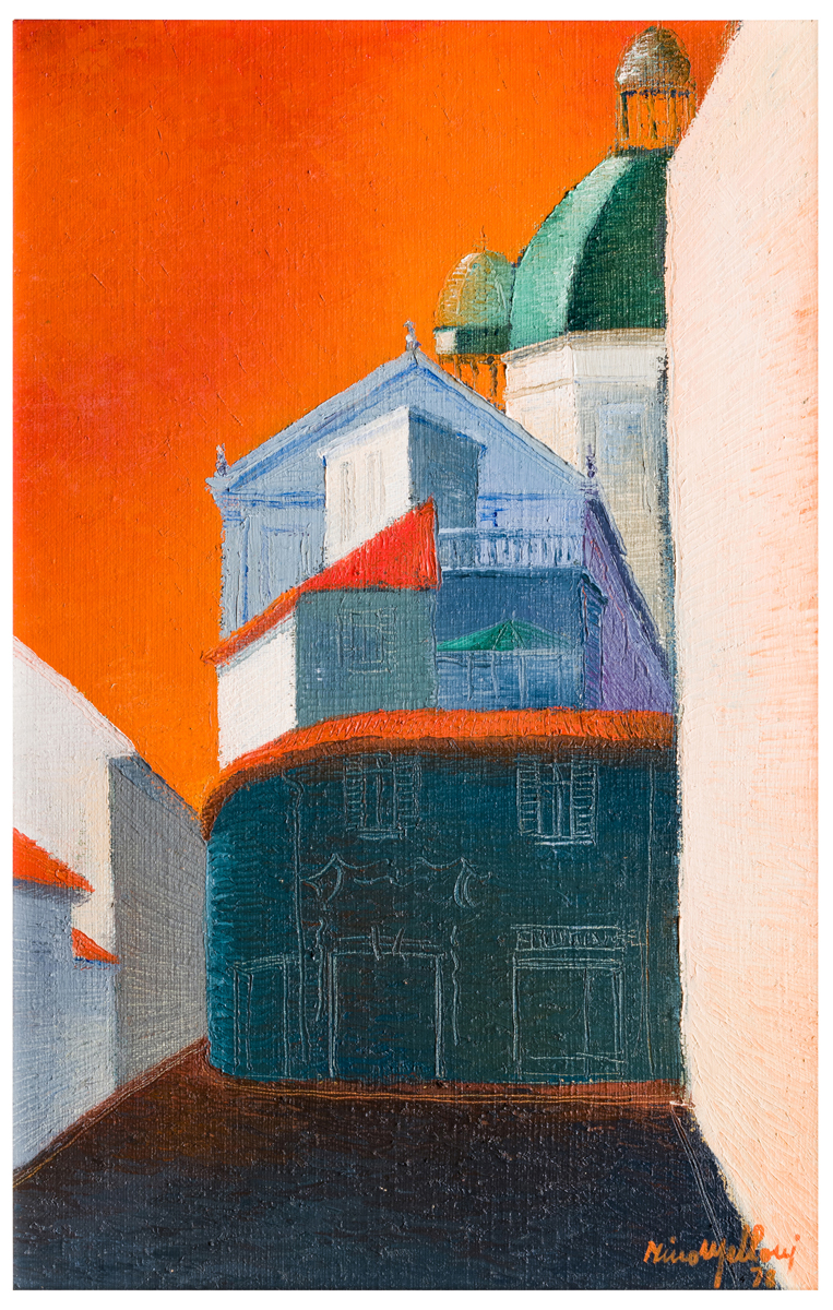 Nino Melloni (1930) Veduta del duomo di san Vittore ad Intra, 1978