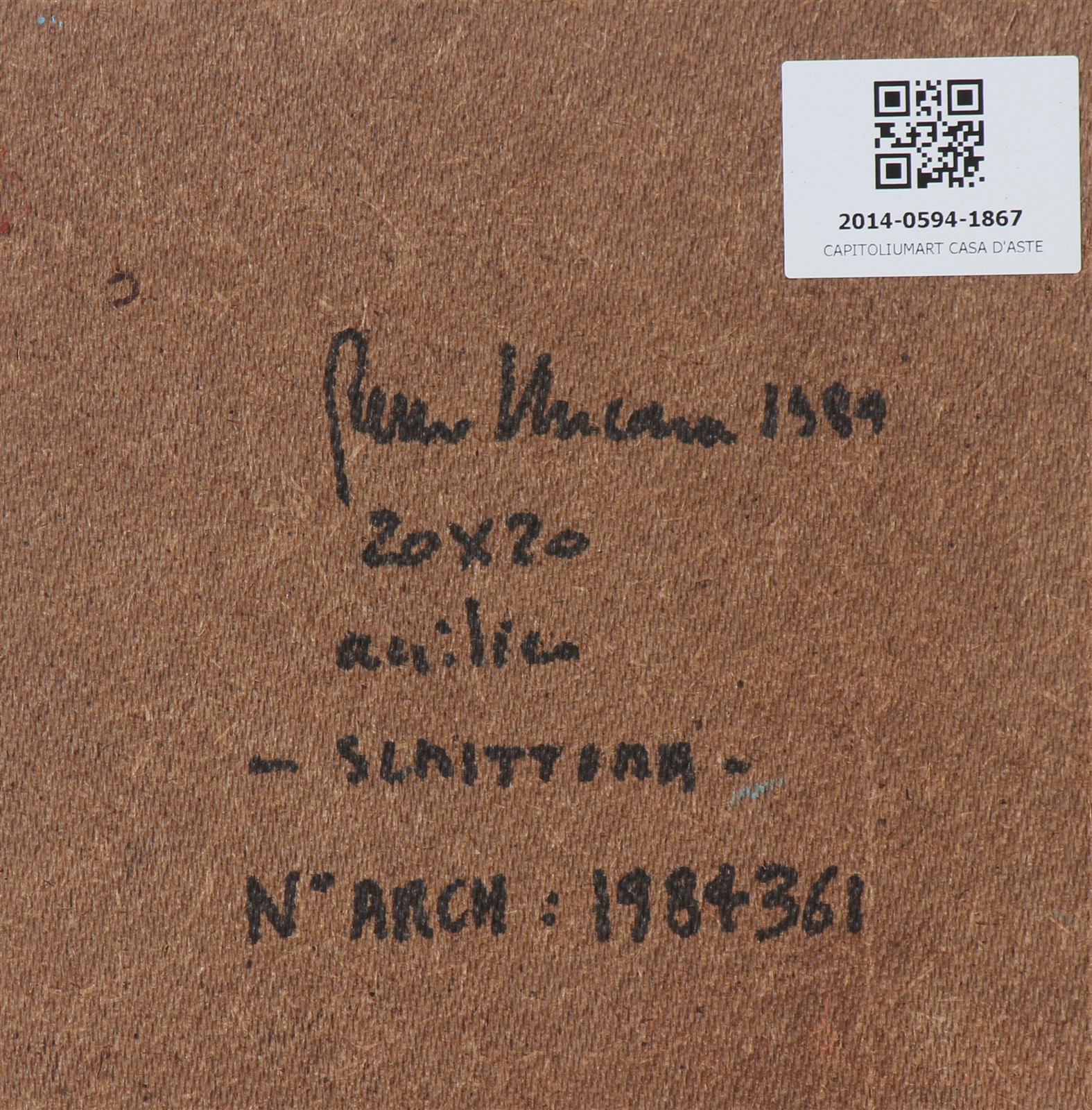 NUCARA RENZO (n. 1955) Scrittura. 1984. Acrilico su tela. Cm 20,00 x 20,00. Firma e anno in basso a destra. Al retro firma, data, tittolo e numero di archivio. Autentica dell' artista su fotografia riportante il relativo numero di archivio.