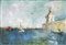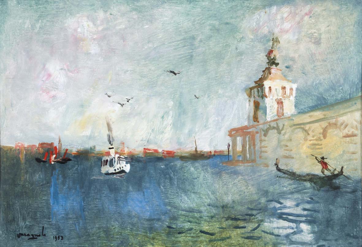 VARAGNOLO MARIO Venezia 1901 - 1971 Punta della Dogana 1953 olio su tavola 35x50 cm firma e data in basso a sinistra parere verbale favorevole della figlia Anna Varagnolo