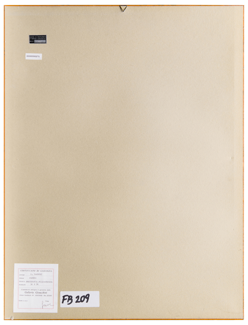 Certificati: sul verso, certificato di garanzia Galleria Gioacchini con dati relativi all’opera