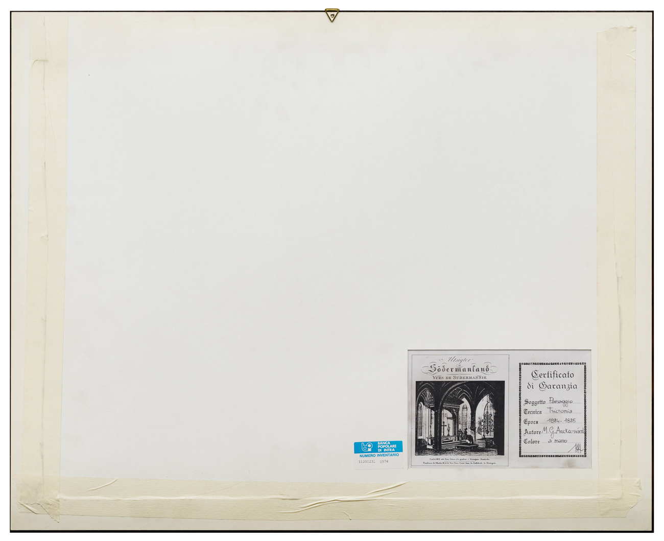 Elementi distintivi: sul verso, etichetta della Banca Popolare di Intra con riferimenti di inventario