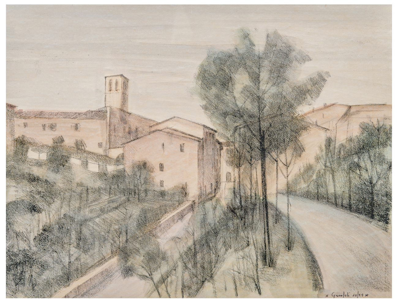 Francesco Garofoli nasce a Sassoferrato nel 1928. Nel 1947 si iscrive alla Scuola d’Arte di Urbino, specializzandosi in litografia. Termina gli studi nel 1952. Nel 1953 l’Accademia Raffaello di Urbino gli conferisce il diploma di merito. Nel 1951 è tra i tre fondatori della Rassegna d’Arte “G. B. Salvi”. Nel 1988 viene nominato Cavaliere della Repubblica dall’allora presidente Francesco Cossiga. Per molti anni insegna disegno e storia dell’arte nelle scuole superiori, coltivando contemporaneamente la produzione artistica nel campo grafico e pittorico. Giornali, riviste e molte pubblicazioni hanno seguito la sua attività. Ha tenuto numerose mostre personali in Italia e all’estero, ricevendo consensi e premi; sue opere sono state esposte, oltre che nelle maggiori città italiane anche Parigi, Tokio, Hong Kong, Città del Messico, Guadalajara, Cracovia, Zaragozza. La sua carriera di artista ci è stata riassunta in poche righe dal suo amico e critico Fabio Ciceroni: “Quell’angolo di universo che si svela per una delicatezza sospesa, e che può risultare imprendibile all’osservatore frettoloso dell’oggi, e che si ha quasi il pudore di rivelare per paura di non trovarne la misura espressiva, Francesco Garofoli lo ha fatto affiorare lungo tutta la sua sensibile fatica d’artista”.