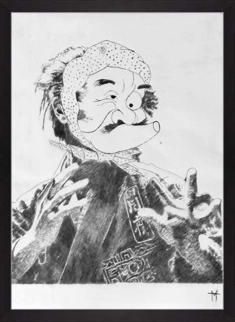 “Hyottoco”, 2025, Penna colorata su carta tecnica lucida.
