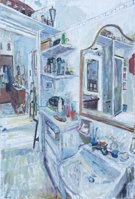 Roberto Anfossi (1950), “Interno con Bagno”, 2000, Olio su tela, cm 80 × 120...