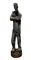 Scultura in legno (pioppo e sequoia), caratterizzata da un corpo statico e immobile, attraversato da crepe e solchi che ne enfatizzano la profondità, dipinta con colori acrilici blu e neri.