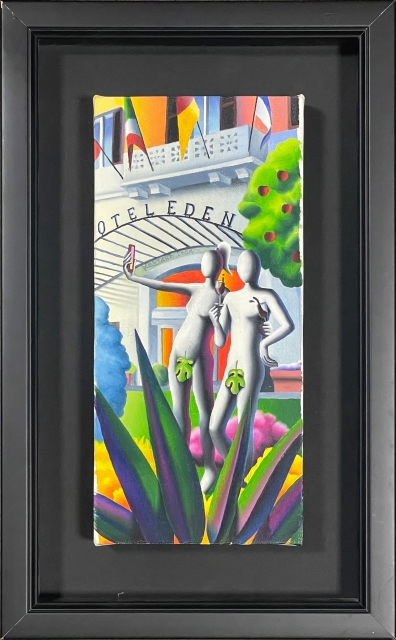 Mark Kostabi, (1960), "Catturare la Felicità", 2024, Olio su tela cm 18 x 40...