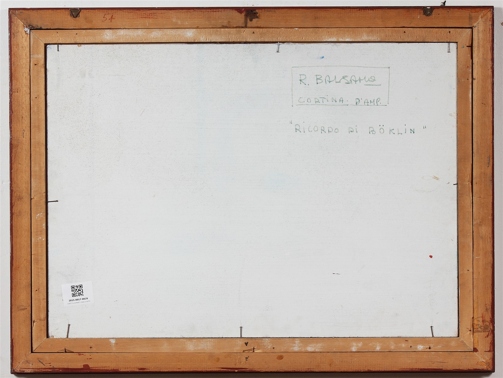 BALSAMO RENATO (n. 1937) Ricordo di Bokiln. Acrilico su tavola. Cm 50,00 x 70,00. Firma in basso a destra. Al retro titolo e firma. Cornice presente