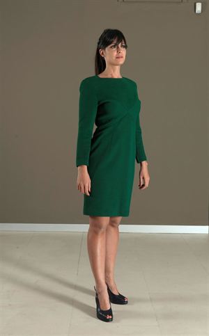 VALENTINO BOUTIQUE Abito in maglia di colore verde smeraldo, incrocio di linee come motivo a forma di clessidre orizzontali sul davanti, anni '80 tg. M VALENTINO BOUTIQUE 1980's Emerald green knitted dress with criss-cross in the front Size M