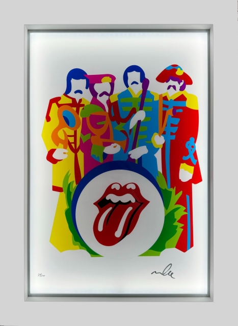Marco Lodola, “Super Band”, anni 2020, Serigrafia su PVC in cornice con sistema Led, Edizione 47/100,