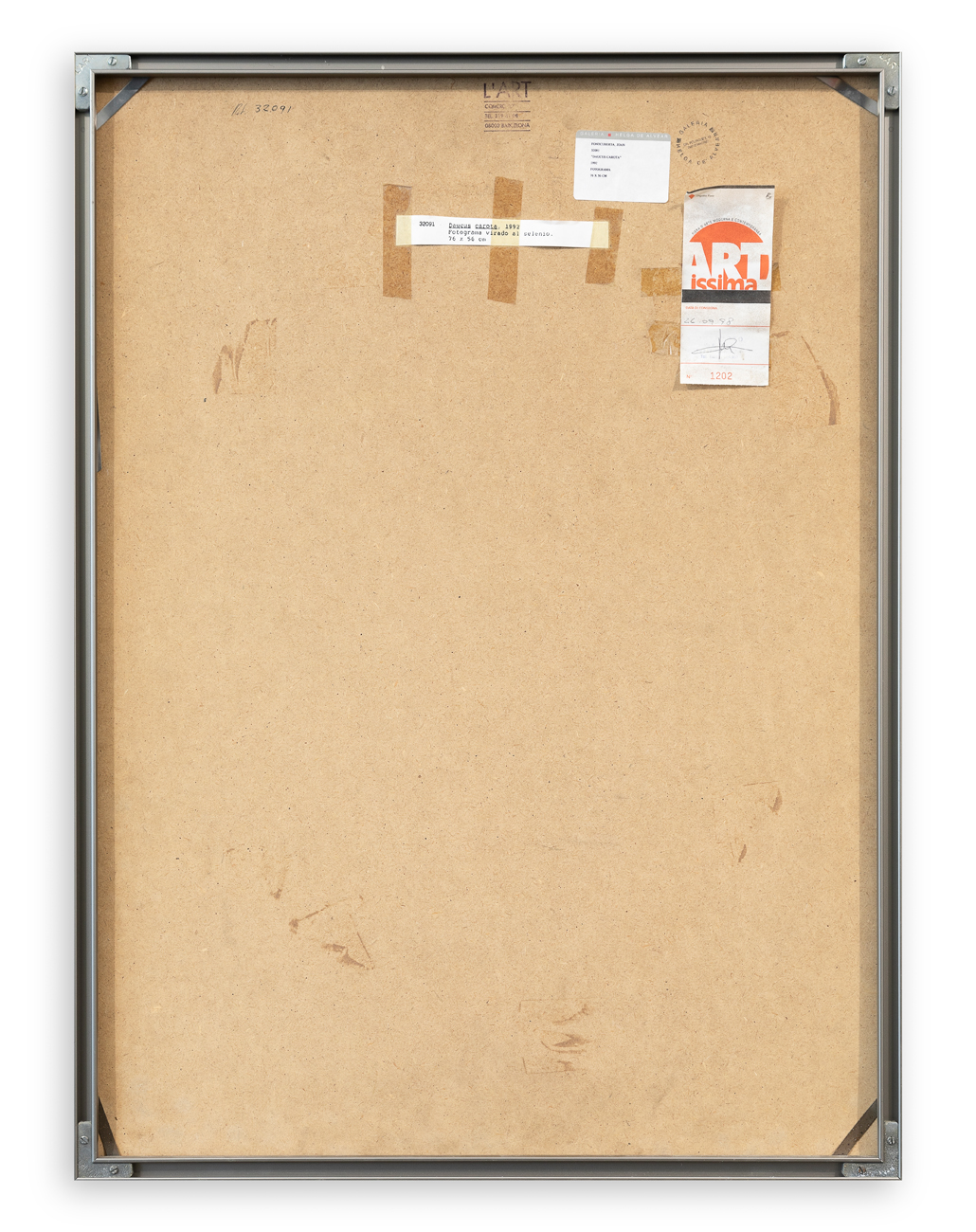 Etichetta e timbri della Galeria Helga de Alvear (Madrid) al retro della tavola protettiva